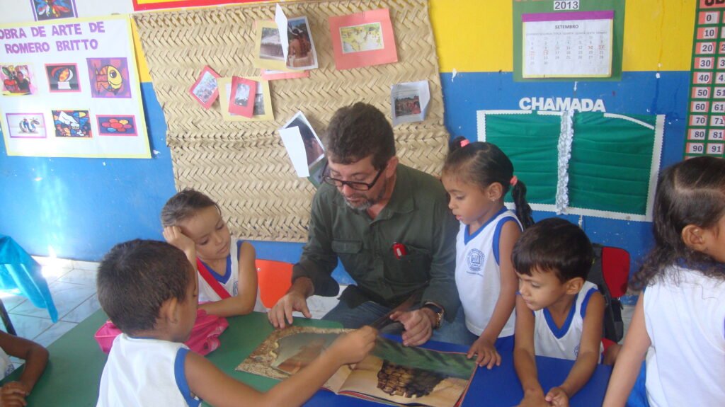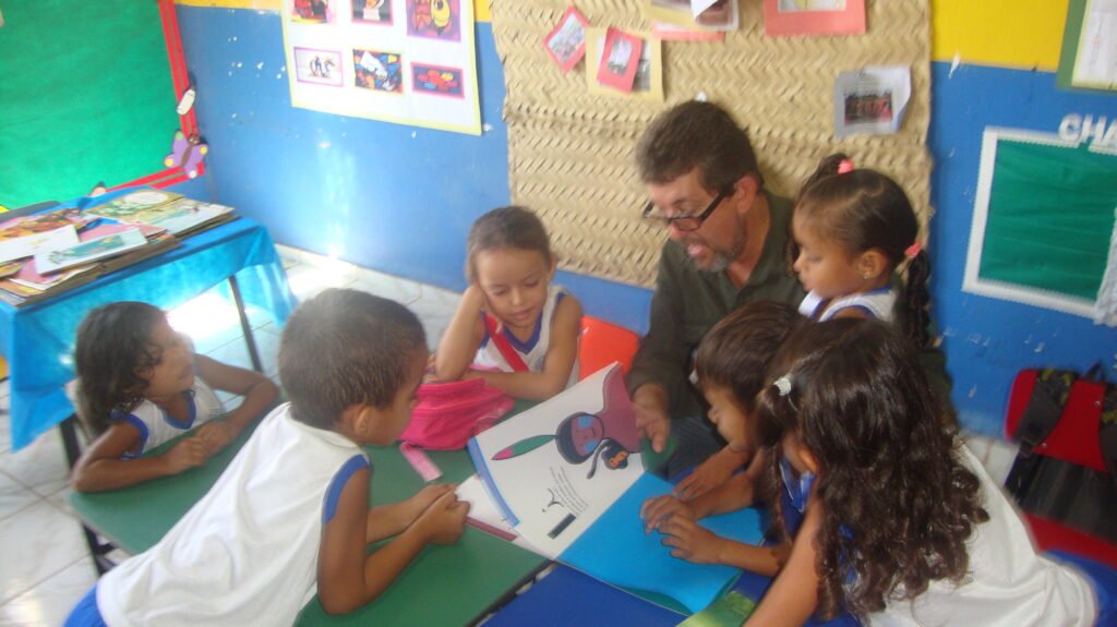 Nilson Ericeira interagindo com alunos da educação infantil – gestão 2013-2016, eis aqui um aprendizado mútuo.